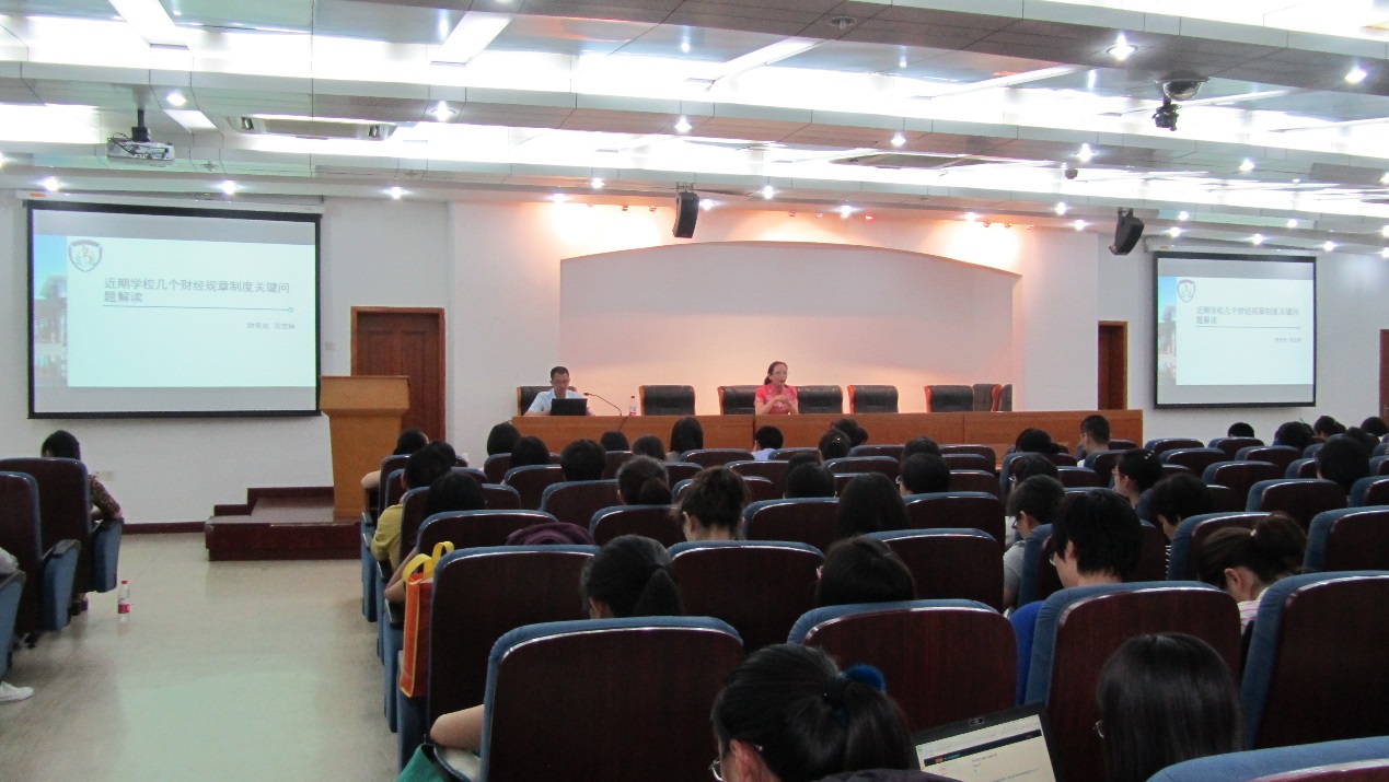 2015年6月10日星期三下午2点在博物馆一层报告厅,财务处举办了“财务政策解读与报销流程培训会”,全校100多名师生参加了培训。此次培训主要目的是为广大师生解读学校近三年出台的财经规章制度,并详细介绍财务各项业务的报销流程。